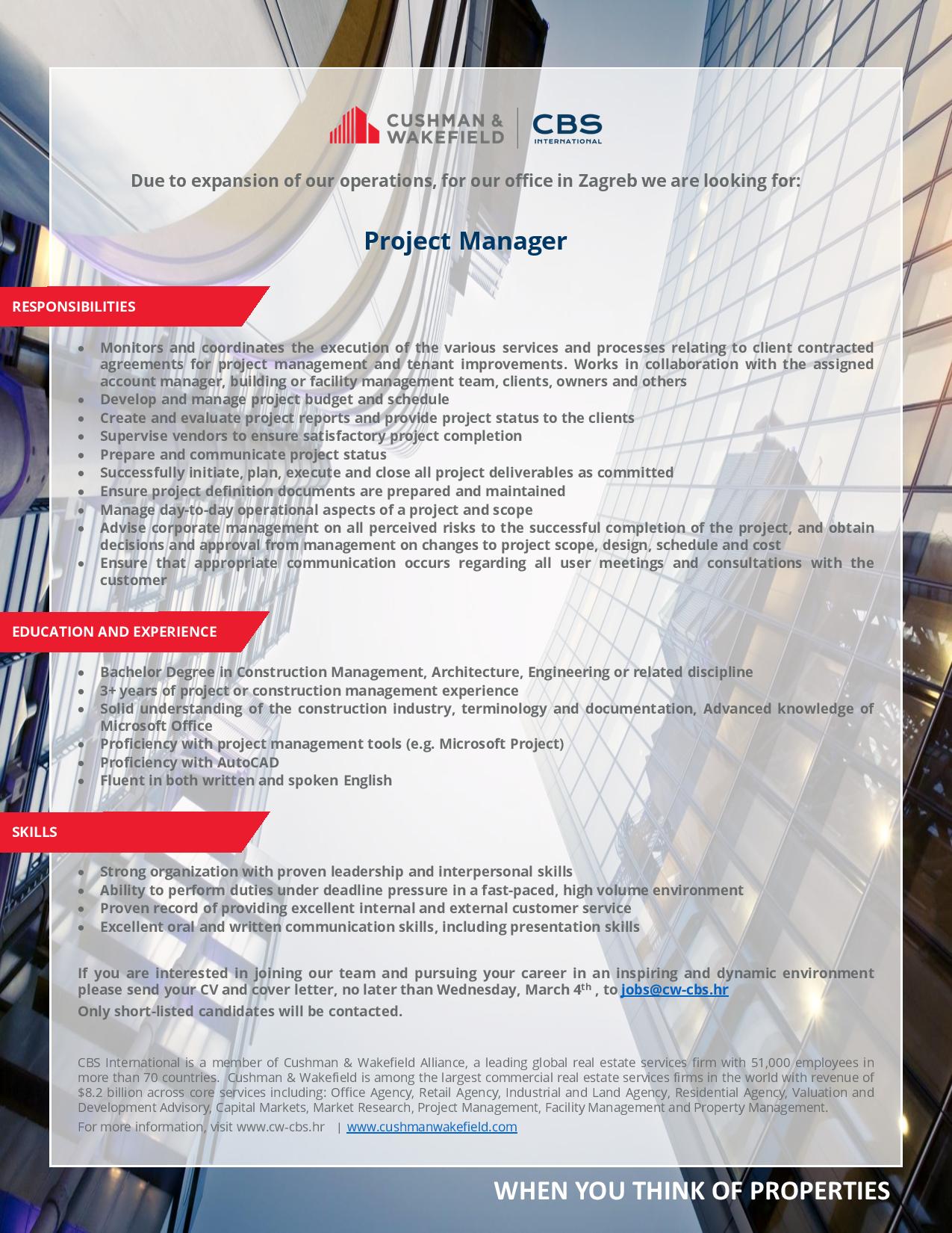 Cushman & Wakefield | CBS international - ZAPOŠLJAVAJU
