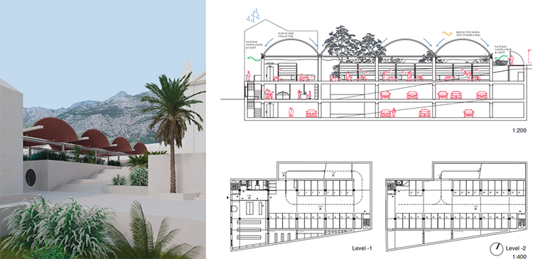 DRUGA NAGRADA u iznosu od 6.000,00 € dodjeljuje se radu PP134, A Roof Without a House - A Study of Slowness, autorskog tima Ria Tursan, Jana Horvat, Antea Divić, Sara Blekić, Hana Dašić, arhitektice, Hrvatska