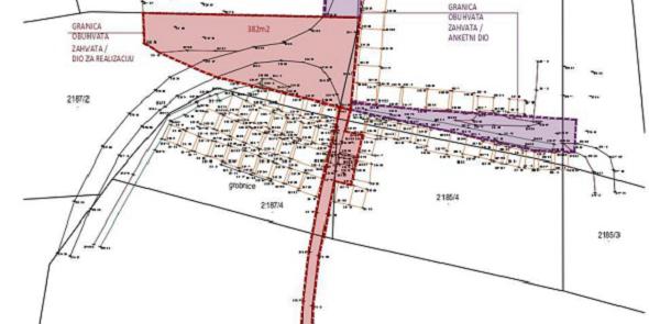 Anketni dio obuhvaća pristupne putove budućem centru groblja, i to sa sjevera, površine P = 186m2 i sa istoka, površine P = 134m2. Anketnim dijelom natječaja obrađuje se oblikovanje glavnog križa na groblju.