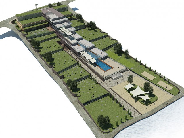 Ceo kompleks je projektovan u pravcu zaleđe-obala radi čitljivosti forme, poštovanja zatečene matrice i njene razvojne ose te formiranja pešačkog koridora-skalinade, koja opslužuje ceo kompleks i sve sadržaje.