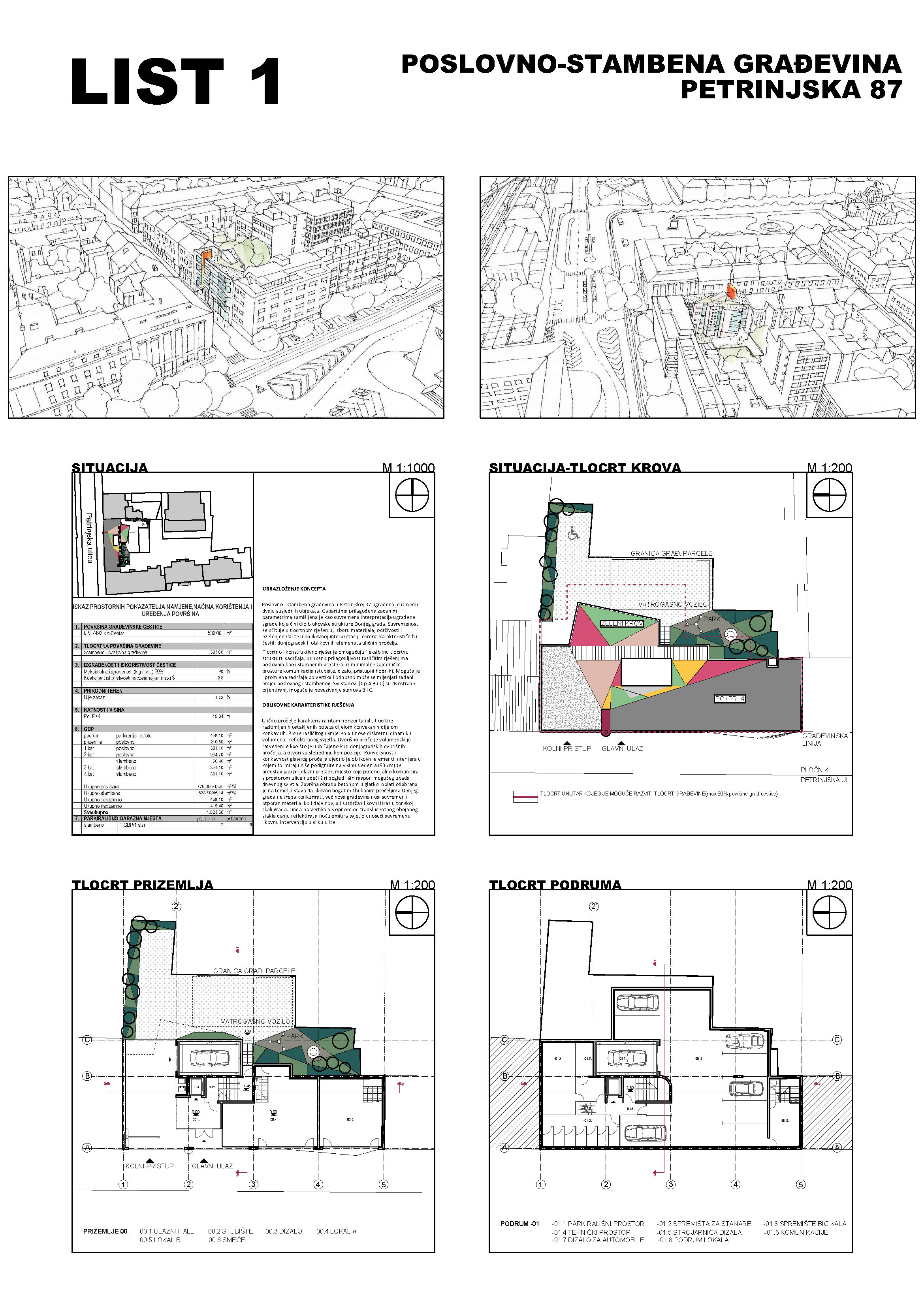 natječaja bio je dobivanje najboljeg idejnog arhitektonskog rješenja temeljem kojeg će se izraditi daljnji potrebni projekti za uređenje prostora i izgradnju poslovno stambene građevine na lokaciji Petrinjska 87, Zagreb, k.č. 7492 k.o. Centar.
