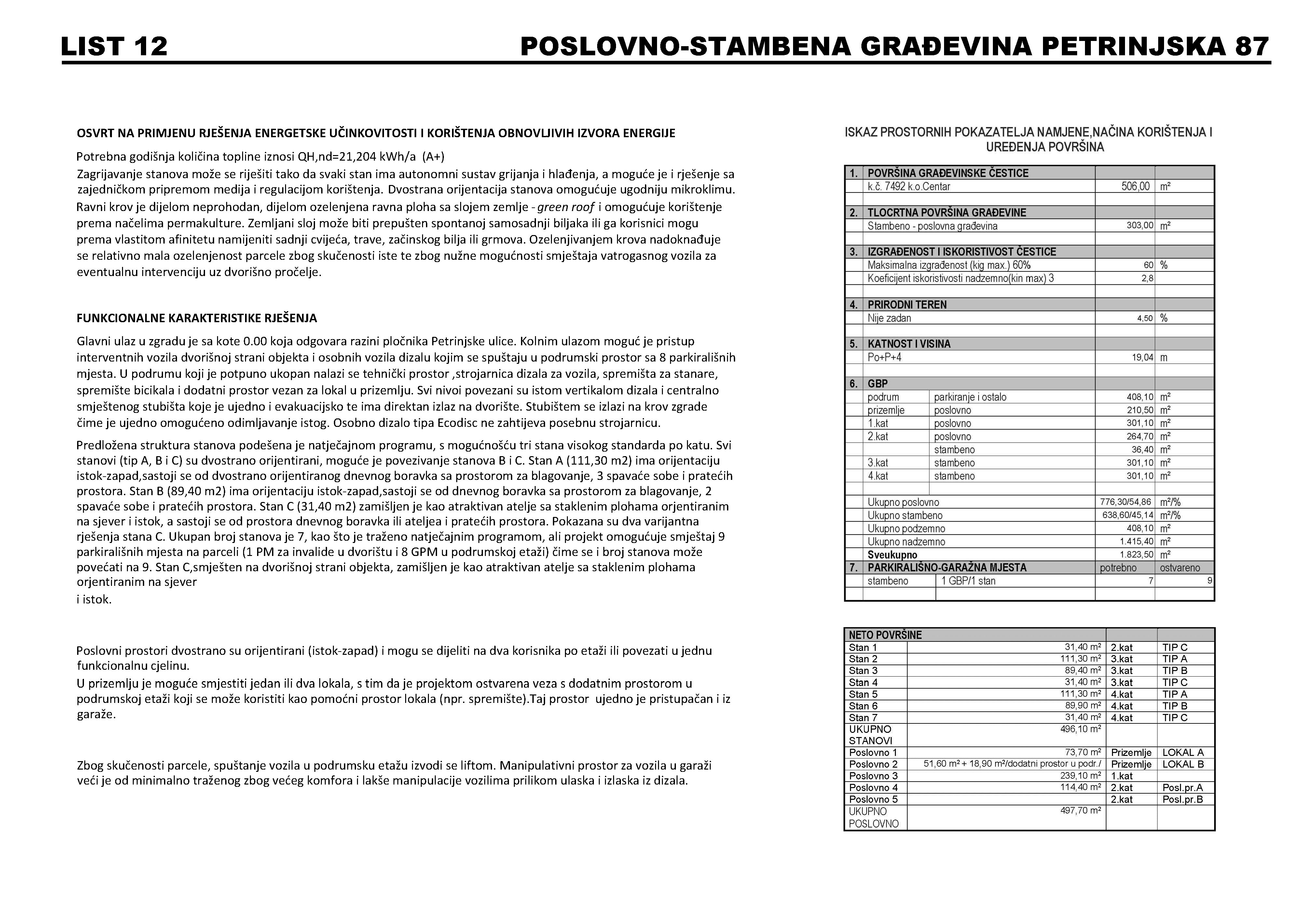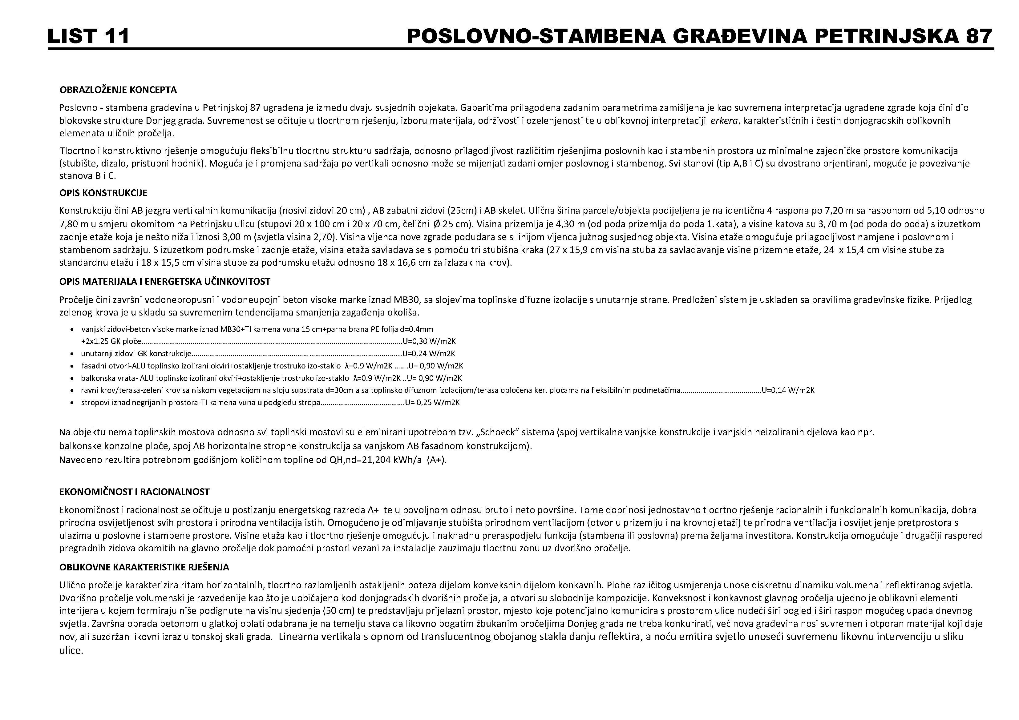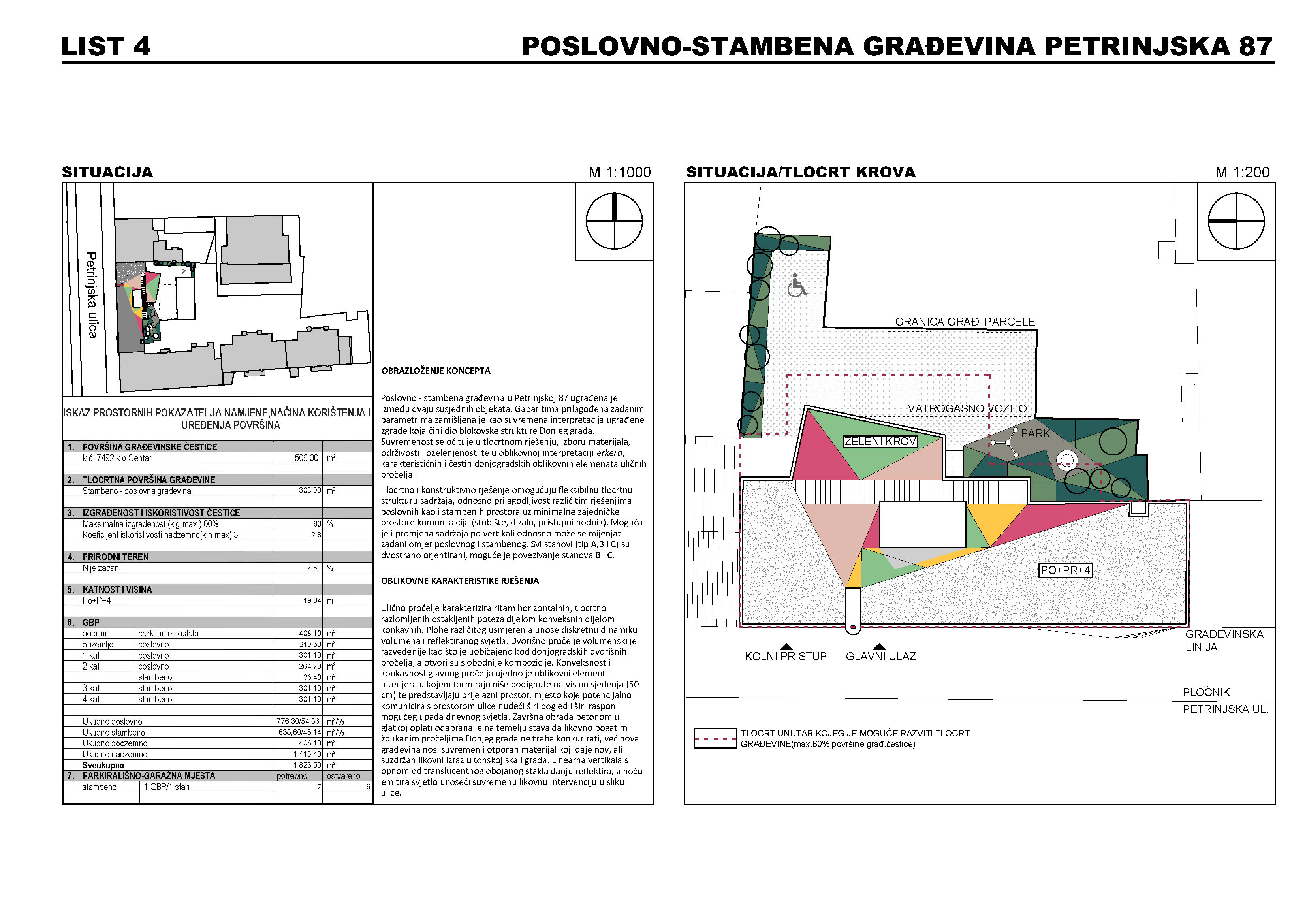 opći , za realizaciju u jednom stupnju, javni i anonimni za izradu idejnog arhitektonskog rješenja poslovno-stambene građevine - Petrinjska ulica 87 u Zagrebu.