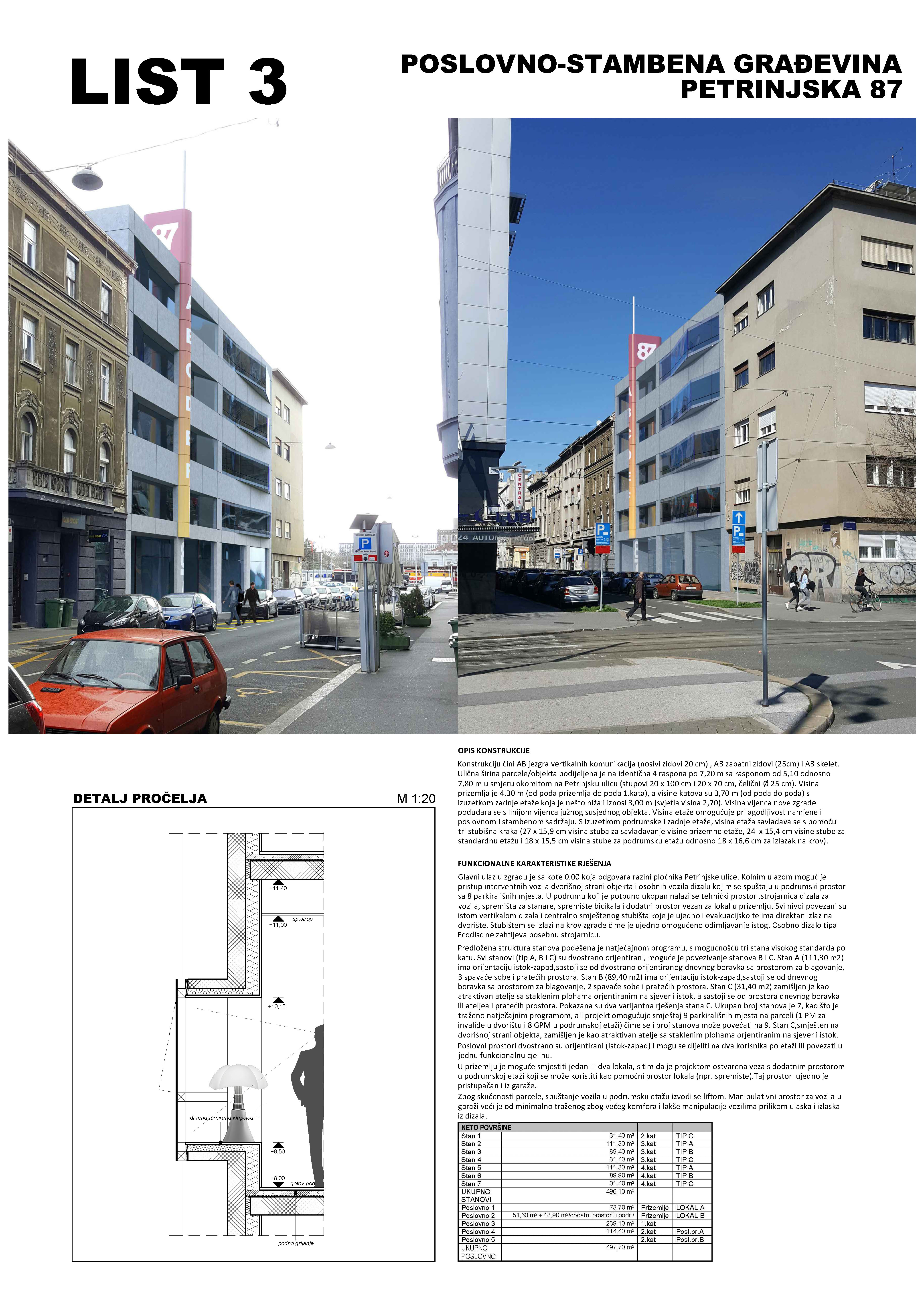 Rezultati natječaja za izradu idejnog arhitektonskog rješenja poslovno - stambene građevine Petrinjska ulica 87 u Zagrebu