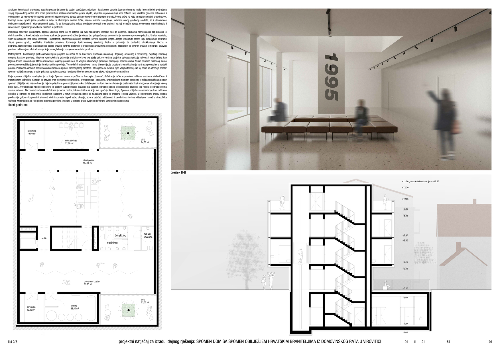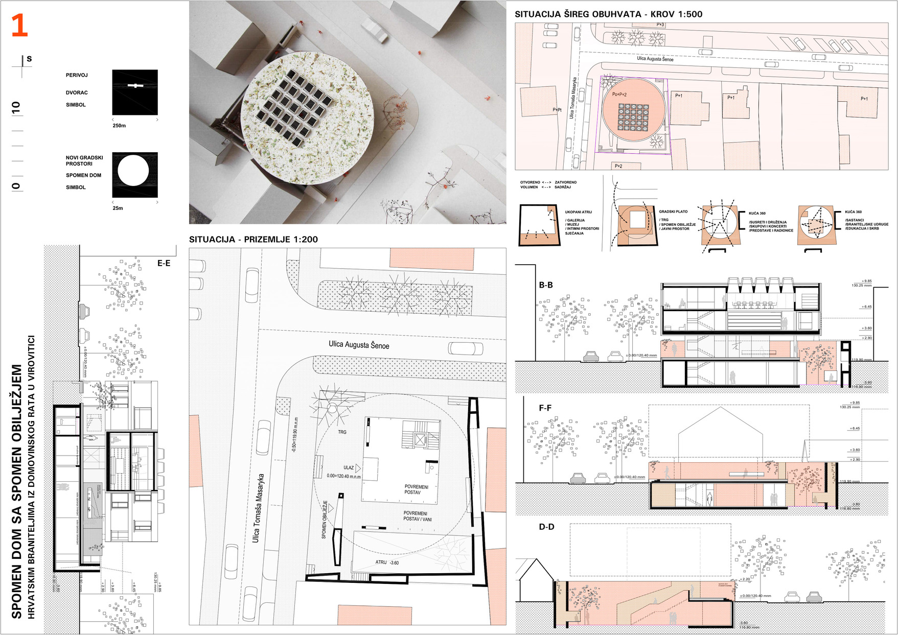 Grad Virovitica želi realizirati na zadanoj lokaciji rješenje visoke estetske, funkcionalne i oblikovne kvalitete unutar optimalnog financijskog okvira. Stoga se odlučuje na provedbu natječaja koji će omogućiti odabir najkvalitetnijeg rješenja između više ponuđenih autorskih radova. Idejno rješenje obrađuje Spomen dom hrvatskim braniteljima površine BRP cca = 1000m2 i Spomen obilježje hrvatskim braniteljima iz Domovinskog rata, sve u sklopu jedne parcele, riješeno integralno u skladu sa zadanim lokacijskim uvjetima.
