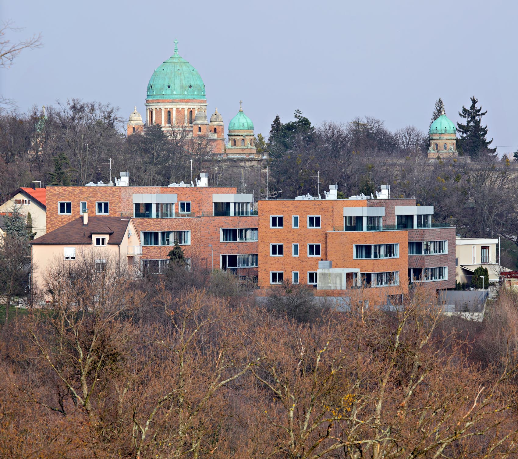 Cjelina od četiri manje stambene zgrade u susjedstvu zagrebačkog groblja Mirogoj vrlo doslovno se koristi temom kontekstualnosti, tj. korištenjem opeke kao izražajnog sredstva. Na određeni način ove kuće bave se održanjem kontinuiteta visokog gradbenog, ali i stambenog, standarda.