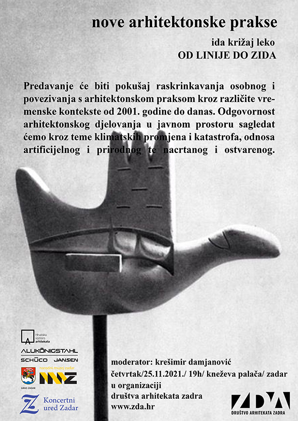 Predavanje će biti pokušaj raskrinkavanja osobnog i povezivanja s arhitektonskom praksom kroz različite vremenske kontekste od 2001. godine do danas. Odgovornost arhitektonskog djelovanja u javnom prostoru sagledat ćemo kroz teme klimatskih promjena i katastrofa, odnosa artificijelnog i prirodnog te nacrtanog i ostvarenog.
