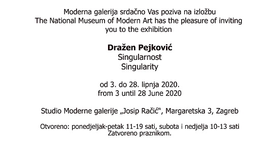 Izložbu možete vidjeti u Modernoj galeriji "Josip Račić" od 3. do 28. lipnja 2020. godine, Margaretska 3, u Zagrebu