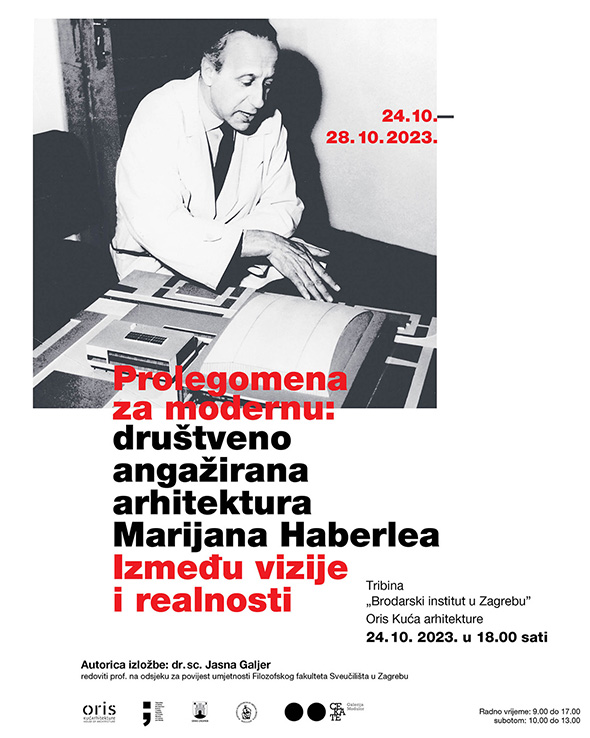 Izložba "Prolegomena za modernu: društveno angažirana arhitektura Marijana Haberlea između vizije i realnosti" galerije Modulor Centra za kulturu Trešnjevka Oris Kući arhitekture / 24.10.2023. u 18 sati