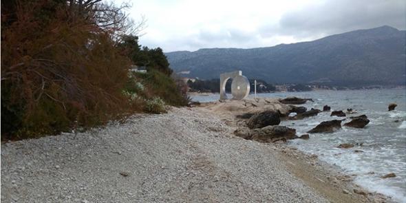 Trećenagrađeni rad opravdano računa na interakciju s okolinom. Dva masivna kamena bloka uspostavljaju uravnotežen odnos s time da se punina i praznina odnose na simboliku hrvatskog grba. Kvadratića polja. Mogućnost učitavanja oblika križa umanjuje, međutim, univerzalnost njegova podizanja, a cjelina nije dovoljno izrazita. Kretanjem, međutim, dobivaju se bogate vizure.