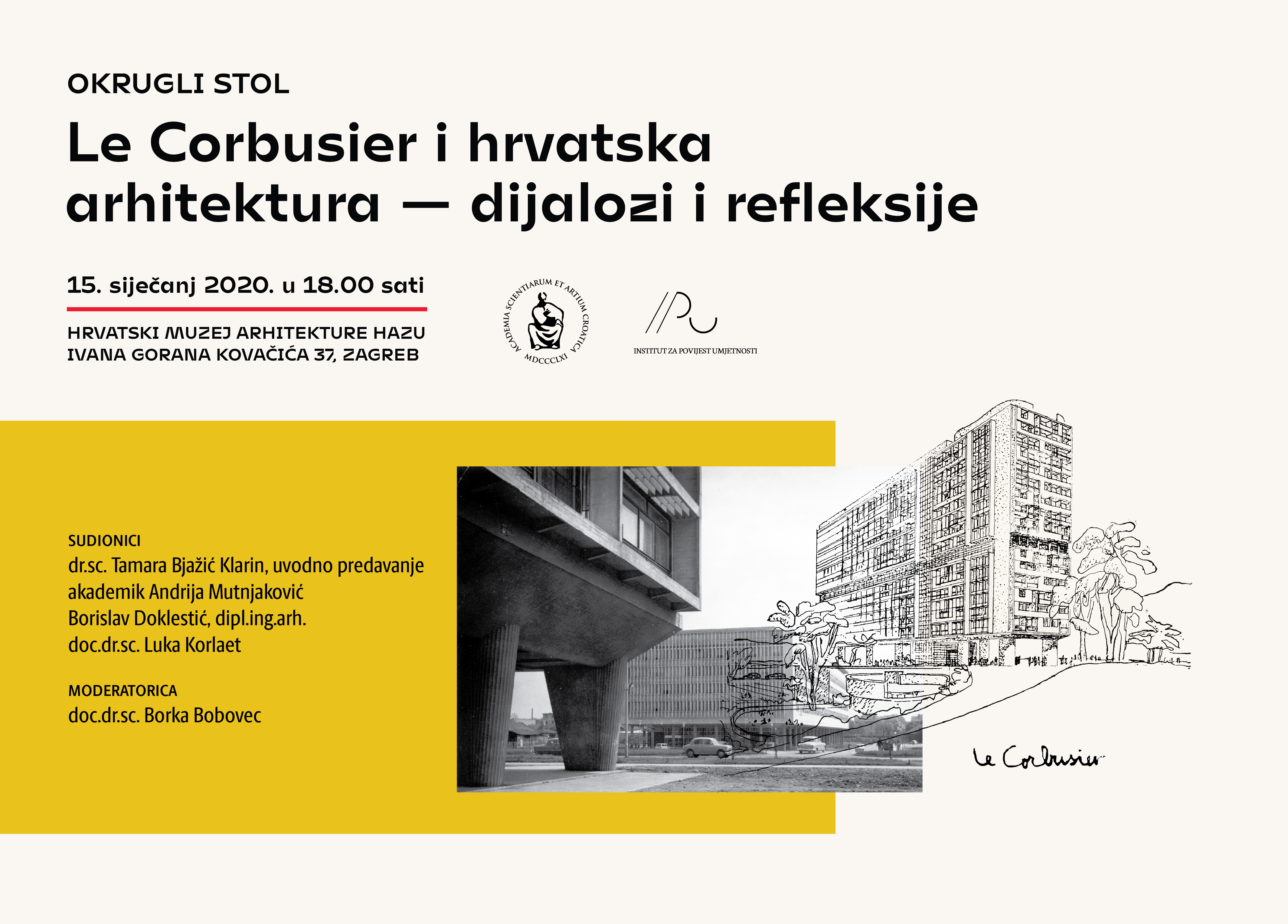 ljubazno Vas pozivamo na Okrugli stol "Le Corbusier i hrvatska arhitektura - dijalozi i refleksije"