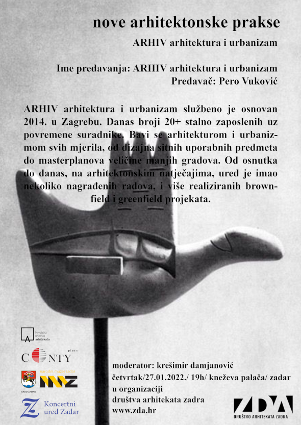 Pero Vuković / ARHIV arhitektura i urbanizam / predavanje u Zadru, četvrtak 27.1.2022. u 19 sati, uz virtualni prijenos