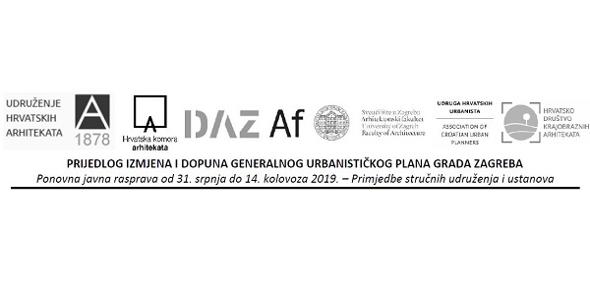 Hrvatska komora arhitekata, Udruženje hrvatskih arhitekata, Udruga hrvatskih urbanista, Hrvatsko društvo krajobraznih arhitekata, Društvo arhitekata Zagreb i Arhitektonski fakultet Sveučilišta u Zagrebu pozivaju Grad Zagreb da sukladno Zakonskoj obvezi dostavi Izvješće o javnoj raspravi provedenoj od 31. srpnja do 14. kolovoza 2019. godine u postupku donošenja Izmjena i dopuna GUP-a Zagreba.