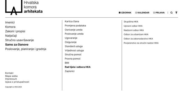 Web stranica HKA - što možete pronaći? – Rad tijela i odbora HKA-a, Burza rada i rubrika „Za investitore“