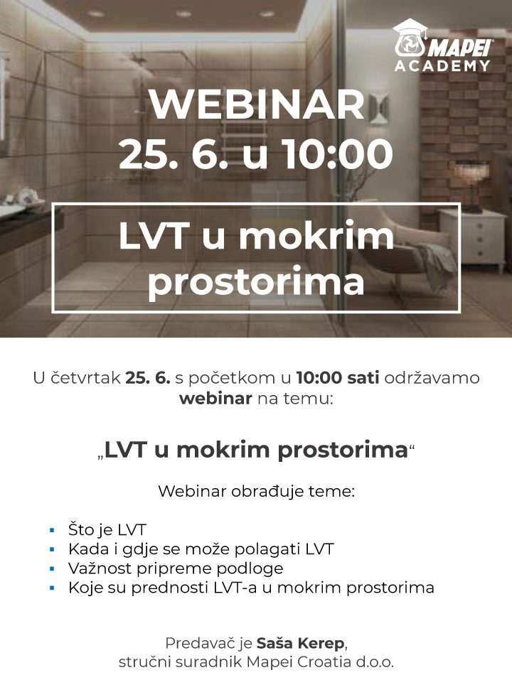 Mapei Croatia: Webinar "LVT u mokrim prostorima" - 25.6.2020.