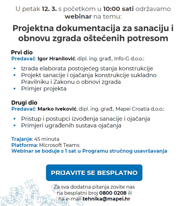 Projektna dokumentacija za sanaciju i obnovu zgrada oštećenih potresom - Mapei webinar
